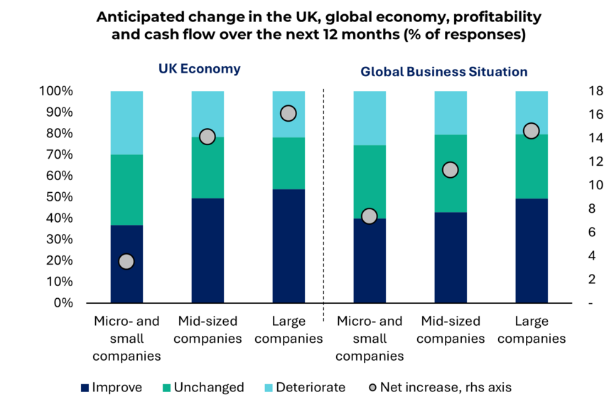 Pomimo obecnych wyzwań, pojawiają się oznaki nadziei. Ponad jedna trzecia firm spodziewa się, że opóźnienia w płatnościach zmniejszą się w 2026 roku, wspierane przez poprawiające się nastroje gospodarcze oraz oczekiwania dotyczące wyższej rentowności i lepszej płynności finansowej. Jednak ten optymizm nie jest równomierny - mikro i małe przedsiębiorstwa pozostają bardziej sceptyczne: 66% z nich uważa, że gospodarka Wielkiej Brytanii w 2026 roku pogorszy się lub pozostanie bez zmian, a niektóre sektory nadal zmagają się z ryzykiem strukturalnym, takim jak zmienność stóp procentowych, zagrożenia cybernetyczne oraz zakłócenia w łańcuchach dostaw.